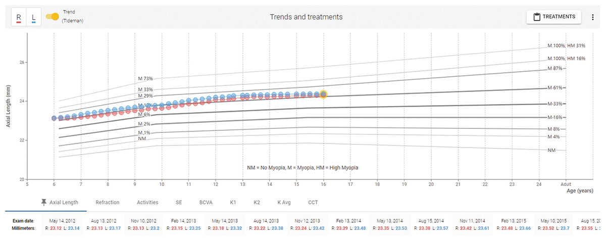 Dodatkowo oprogramowanie MV-1 Myopia Viewer przedstawia historię leczenia i zmiany oka pacjenta w wygodnym podsumowaniu.